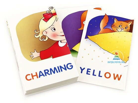 Набор состоит из 48 карточек, которые могут использоваться с двух сторон. Игры с карточками помогут научить ребенка правильно читать по-английски, расширят лексический запас, будут способствовать графическому запоминанию образа слова.