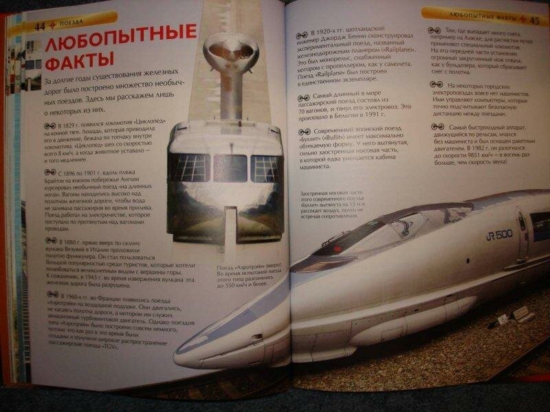 Добрый день. Хотела поделиться своим впечатлением о детских энциклопедиях. Детские энциклопедии Росмэн - это целая серия прекрасных изданий для детей. Брали много книг из этой серии, но ПОЕЗДА просто покорили. Данная энциклопедия очень интересная. Красочные иллюстрации, очень много полезной и интересной информации. Причем интересной не только детям, но и взрослым! Читая, взрослые удивляются изложенным фактам не менее детей. Интересно то, что издание содержит как историческую информацию, так и современную. Если ребенок интересуется темой железной дороги, очень советую купить эту книгу, не пожалеете!