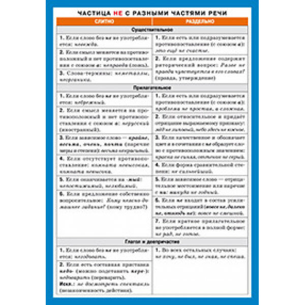 Наибольшие трудности в русском языке вызывают орфография и пунктуация. Правила забываются, грамотность школьников резко понижается. Самостоятельно поправить положение возможно, работая по данному наглядному пособию. Можно не только вспомнить, но и закрепить правила. А проверить свою грамотность, можно написав сочинение или диктант, периодически обращаясь к наглядной табличке. Наглядное пособие "Правописание НЕ со всеми частями речи" имеет удобный формат, уже знакомый ранее школьникам по предыдущим выпускам наглядных пособий по русскому языку издательством "Айрис"; ёмкость материала способствует чёткому запоминанию правил, преодолению трудностей и формированию устойчивых навыков грамотного письма учащихся. В наглядном пособии рассматриваются правописание НЕ слитное и раздельное с разными частями речи: с существительными, прилагательными, глаголами, деепричастиями, причастиями, наречиями, местоимениями. Пособие по русскому языку...