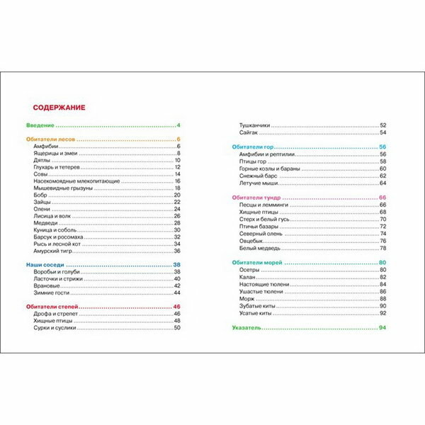 Покупали для ребенка дошкольника, очень интересующегося миром животных. Хорошая книга по содержанию. Текст понятен, интересен и достаточно информативен для ребенка, в том числе и для детей начальных классов. В книге содержится информация не только о животных, но и о птицах. Иллюстрации не очень яркие, но нам понравились. В конце книги имеется алфавитный указатель.