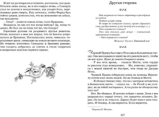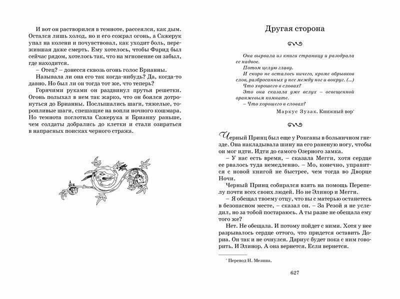 Знаете, в чём парадокс? Эта история с самого начала была очень страшной, никто даже не пытался замаскировать её под детскую сказку со счастливым концом, который виден уже на первых страницах. Нет, автор даёт читателю почувствовать всю полноту ужаса в красной церкви Каприкорна, всю дикую несправедливость Чернильного мира и всё его несовершенство, которое так бросается в глаза людям из современности, страх и отчаяние, которые так часто льются со страниц. Но эта история невероятно притягательна, притягательна настолько, что завидуешь людям, которым удалось попасть внутрь книги, и понимаешь тех, кто выбирает Чернильный мир, а не настоящий. Наверное, «Чернильное сердце» Фенолио также завораживало своих читателей (мне всё ещё хочется его прочесть).