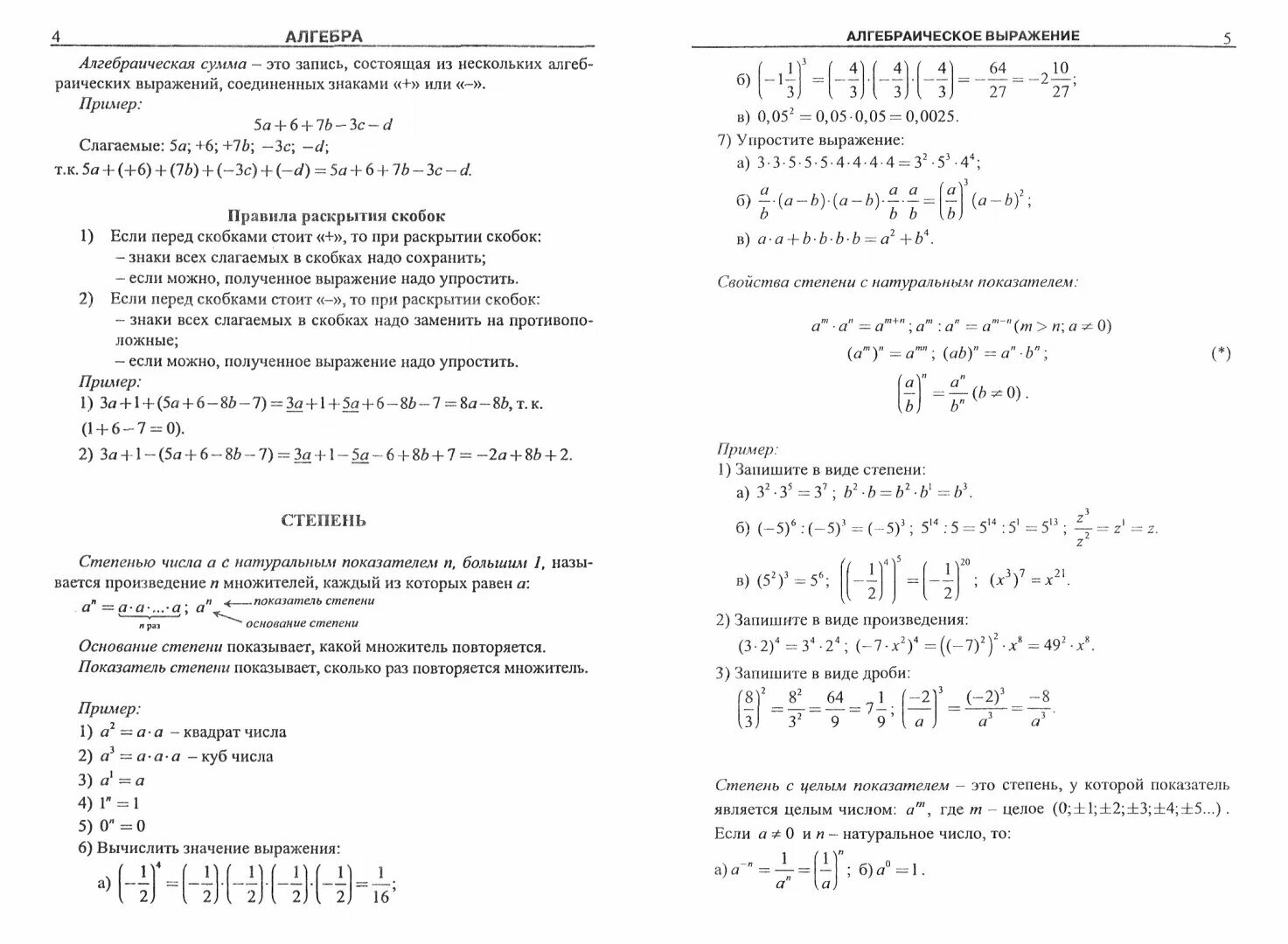 Я ожидала от содержания этой книги краткое изложение теории. Ожидание не совсем оправдалось. Оглавление краткое, найти нужную информацию по оглавлению невозможно. Нельзя сказать, что изложение в книге последовательное. Например, свойства степени я бы искала рядом с показательной функцией, а не в начале книги. Не показано возникновение дробного показателя степени, т.е. связь корня и дробного показателя. Плюс книги - есть разобранные примеры по всем темам.