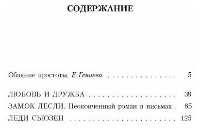 В настоящее издание вошли ранние романы Джейн Остин, до сих пор по праву считающейся первой леди английской литературы: "Любовь и дружба", "Замок Лесли", "Леди Сьюзен". Внешняя камерность этих забавных, искрометных историй, "литературных шалостей", оборачивается в итоге остроумным описанием нравов, едкой сатирой: тексты Остин - пародии, причем довольно жесткие, на мелодраматические опусы XVIII века.