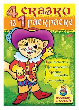 СуперРаскраска 4 сказки в 1 раскраске Кот в сапогах (Баранова И. (худ.)); Хатбер, 2014