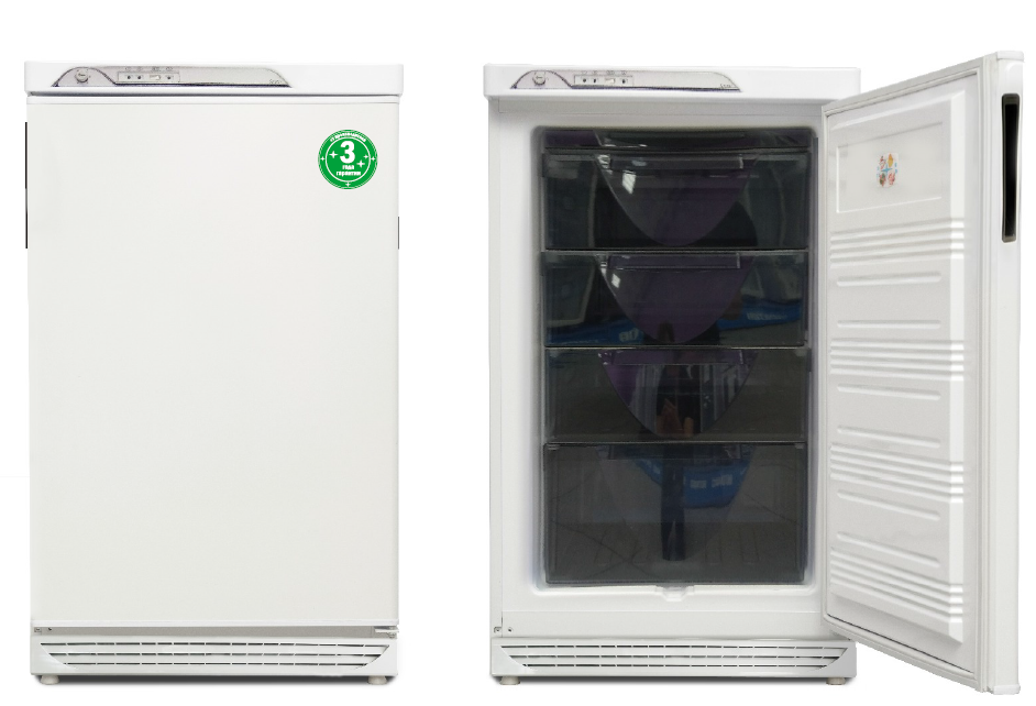 Небольшой, но емкий морозильный шкаф Саратов позволит вам заморозить до 12,5 кг свежих продуктов в сутки. Одна большая камера с внутренним объемом на 125 литров оснащена четырьмя выдвижными ящиками для хранения продуктов. В случае отключения электроэнергии свежесть ваших продуктов обеспечит автономное сохранение холода, рассчитанное на 18 часов. Удобное электронно-механическое управление и наличие световых индикаторов работы облегчают обращение с устройством.