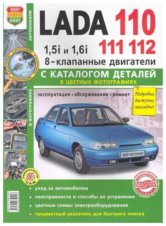 320 стр. Цветное руководство по эксплуатации, техническому обслуживанию и ремонту автомобилей Lada 110 (ВАЗ 2110), с 8-клапанными инжекторнымидвигателями рабочим объемом 1,5 и 1,6 литров. Книга также подойдет владельцам 111 и 112 модификаций данной модели.ISBN:978-5-91685-024-6