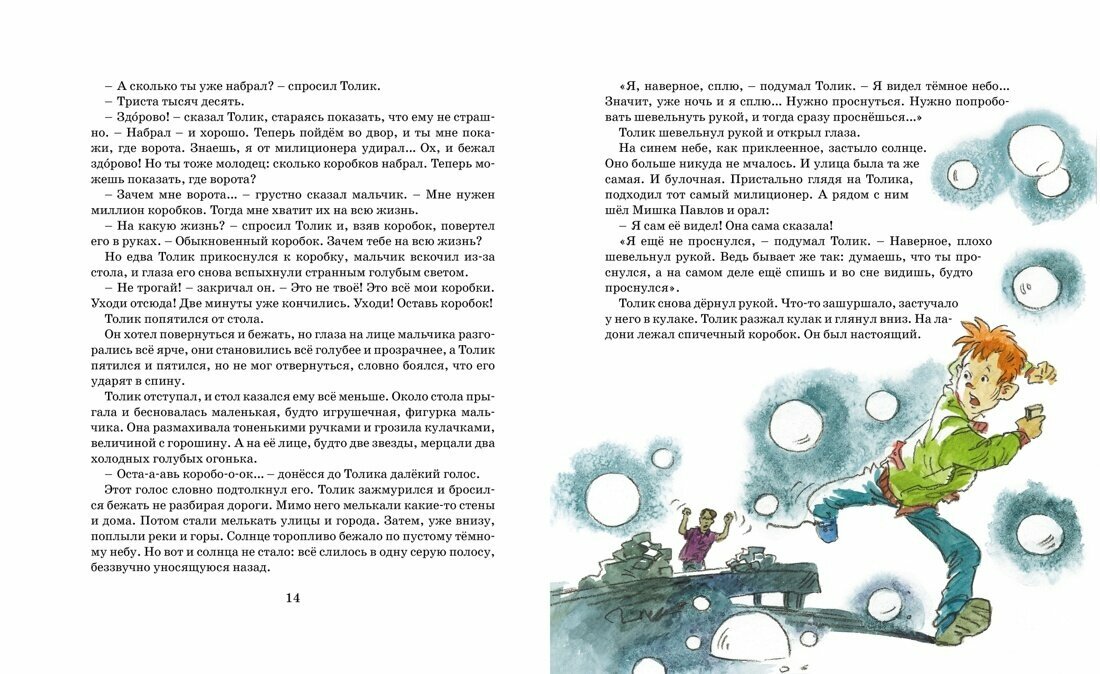 Замечательный экземплярчик, очень порадовал! Хорошие картинки, средний шрифт, большой формат, хорошие цветные иллюстрации! Вообще люблю книги с крупным шрифтом, но это не тот случай, иначе она бы была толстенной)). Сюжет знаком мне с детства про мальчика в руках которого случайно оказался коробок с волшебными спичками. История не только интересная, но и поучительная, т.к. в результате своих необдуманных желаний он остался просто один и попал в очень сложную ситуацию... думаю это повод для детей среднего школьного возраста, коим эта книга и адресована передумать систему своих ценностей! Поскольку сюжет нравлся мне еще с моего детства, выбрала этот экземпляр книги и прочитала сыну уже в пять лет, ребенку понравилось! Спасибо!
