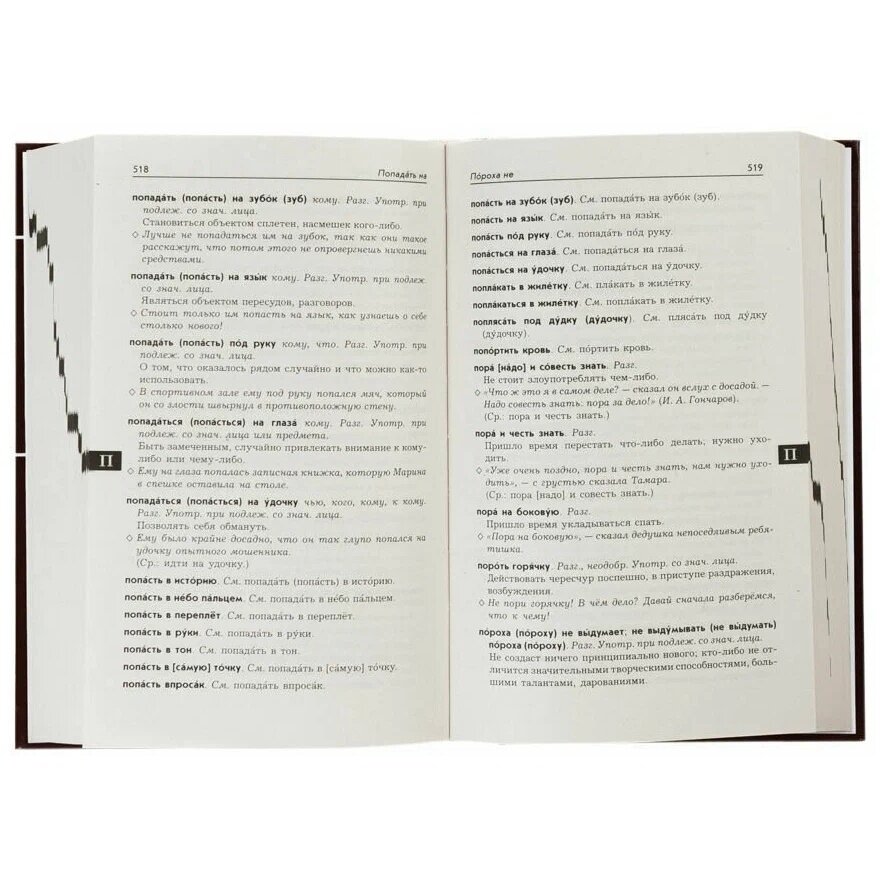 Хорошая, очень годная вещь, как для учащихся, так и для копирайтеров и писателей. Фразеологизмы даны с указанием ударения, присутствует подробная грамматическая характеристика фразеологизмов, к каждому фразеологизму дано подробное толкование, что должно быть интересно человеку, который хочет получить более полное представление о истории и русской культуре. В конце книги есть приложение, в котором собраны наиболее распространённые крылатые слова и выражения и их толкование, что будет дополнительным бонусом для любознательного человека. Мне книга пришла в немного другой обложке, но содержание осталось такое же, что не критично.