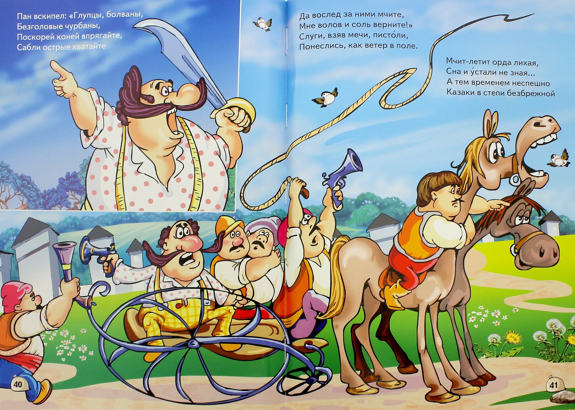 Еще одна книга из серии про казаков по мотивам известного мультфильма. Сюжет идет четко по мультфильму. Стихотворение Т.Королевой(а именно в стихах идет повествование)мне понравилось. На каждой странице несколько четверостиший и каждую страницу занимают иллюстрации, по ним и так все понятно,что происходит, поэтому книга подойдет для детей дошкольников т к интересно рассматривать, а текста немного.
