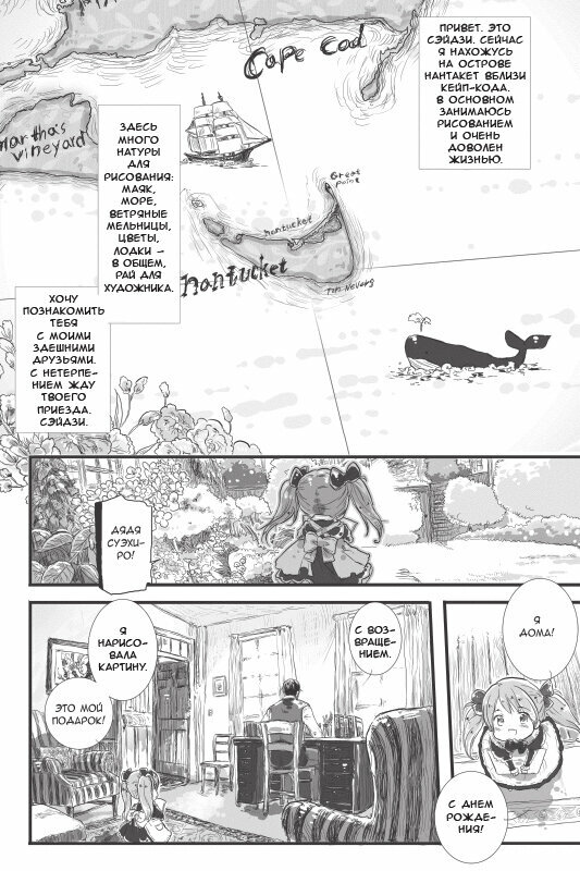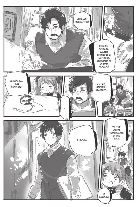 Хорошая рисовка, интересные персонажи и сюжет. Когда я читала эту мангу, атмосфера сложилась какая-то спокойная и уютная, прям как я люблю. Мне она сразу напомнила аниме "Баракамон".
