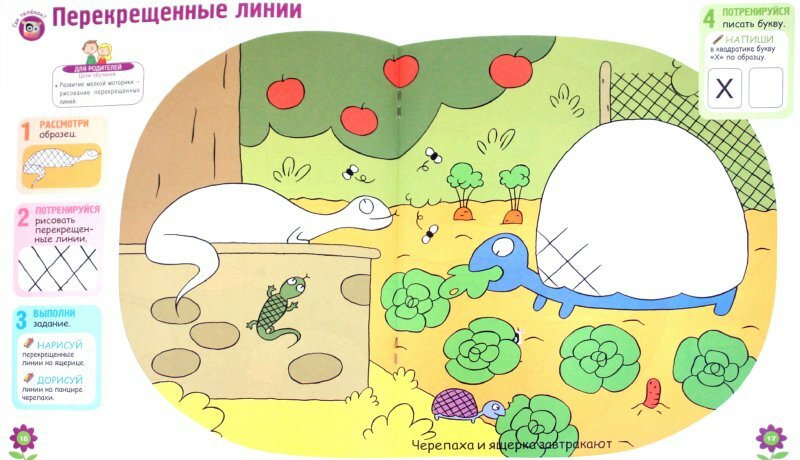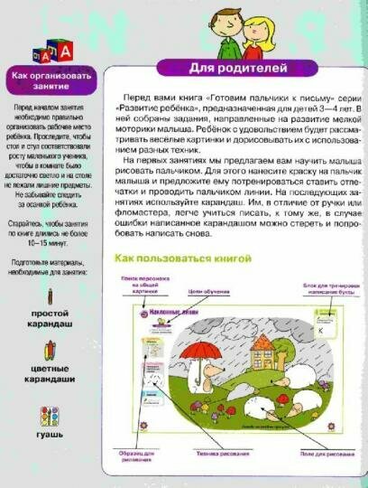 В этой книге ребенок выполнит упражнения, направленные на развитие мелкой моторики и подготовки руки к письму. - рисование пальчиком - рисование карандашом - написание букв.