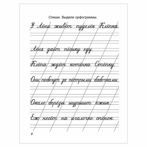 Представленные задания - "обведи элементы букв", "пропиши букву", "выдели орфограмму", списывание с печатного текста, письмо под диктовку - необходимы для отработки каллиграфического почерка и развития мелкой моторики. Каждая буква алфавита дана в виде нескольких простых элементов. На первом этапе ученик обводит напечатанные элементы букв, затем пишет их самостоятельно. Работа по этим прописям даёт очень высокие результаты. Прописи можно использовать для коллективной работы в классе и для индивидуальной работы дома.