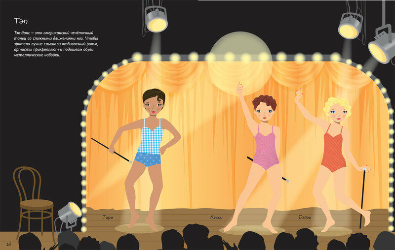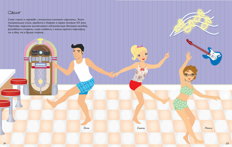 Любимая серия книг с наклейками у дочери. Не успокоилась пока все не скупили. В книгах есть все,что нужно маленьким модницам: симпатичные девчонки, наряды на любой вкус и море наклеек.В "Танцах" на каждой страничке приводятся краткие сведения о каком-либо танце(уличные Танцы,балет,свинг,самба,фламенко,тэп,ирландские,индийские,латиноамериканские,бал ьные танцы, стиль кантри и танец живота). Изображены танцоры, которых надо одеть в соответсвующую случаю одежду. Интересная и красочная книга, надолго увлечет вашего ребенка.