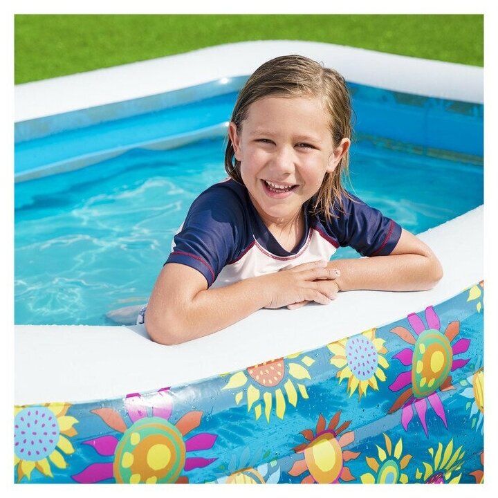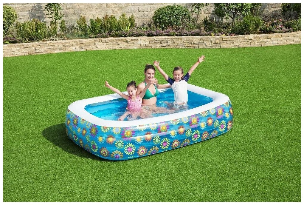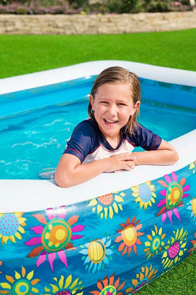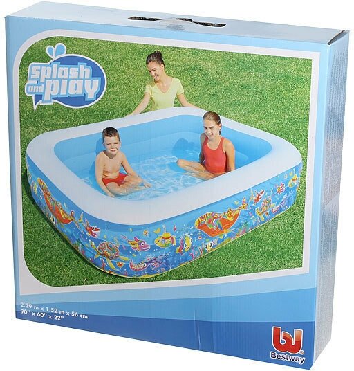Прямоугольный надувной бассейн Bestway "Подводный мир" для детей от 6 лет. Изготовлен из высококачественного винила, устойчивый, надежный и безопасный. Имеет мягкие стенки с широкими бортиками и жесткое дно из ПВХ-пленки. Бассейн легко надувается и устанавливается на любой ровной поверхности. Для слива воды после использования бассейна предусмотрен специальный сливной клапан. Клапан можно подключить к садовому шлангу. На холодное время года не рекомендуется оставлять бассейн на открытом воздухе.