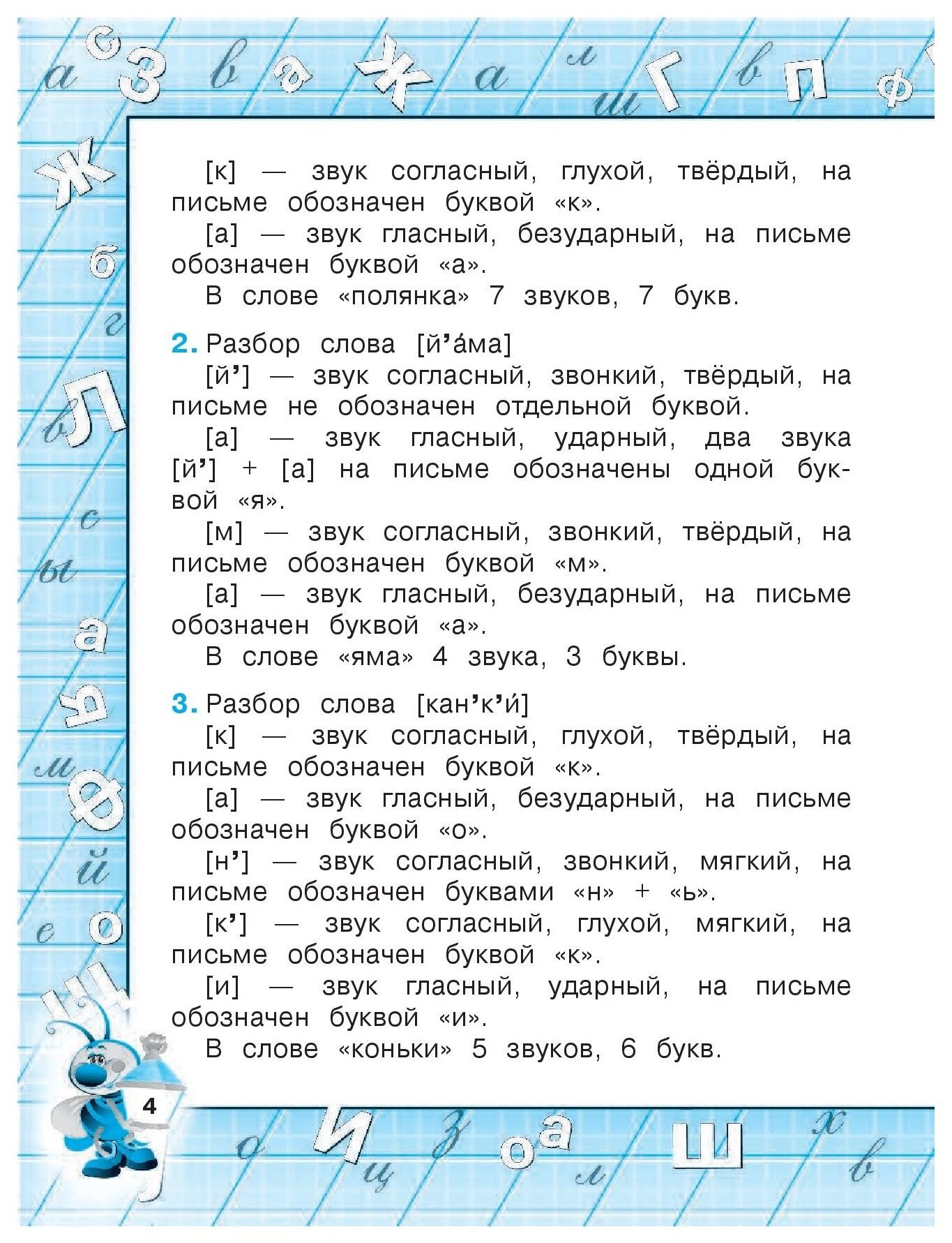 Отличное дополнение к програме начальной школе.Как показала моя родительская практика,у детей возникают трудности при фонетическом разборе слова.В этом пособии представлены алгоритмы фонетического разбора слов ,разбора слова по составу и как часть речи ,разбор предложений,образецы и тренировочные упражнения.Всё написано очень удобно и понятно для ребёнка.