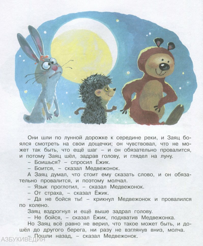 Сказки известного детского писателя Сергея Козлова о Ёжике и его друзьях - Медвежонке, Ослике и Зайце, а также сказка про выдуманную Медвежонком страну Тилимилитрямдию, в которой совсем нет волков.