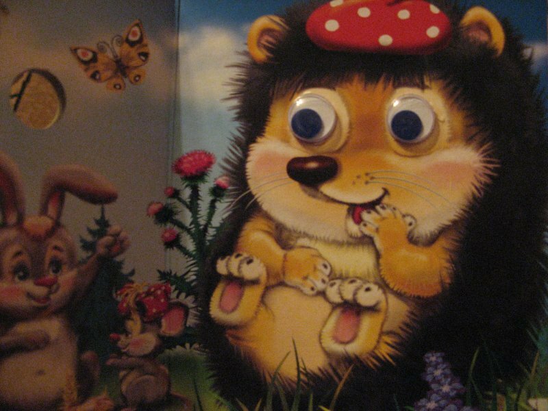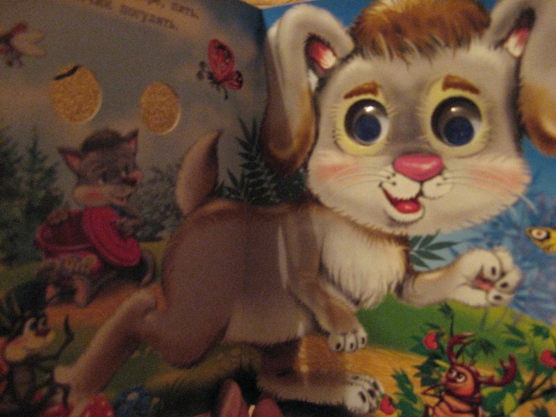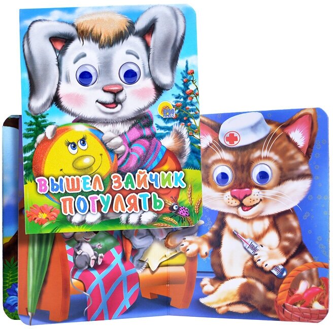 Мини-книжка с глазками сделана из плотного картона, что позволяет ребенку самому легко перелистывать страницы, рассматривать веселые картинки, а также весело играть.