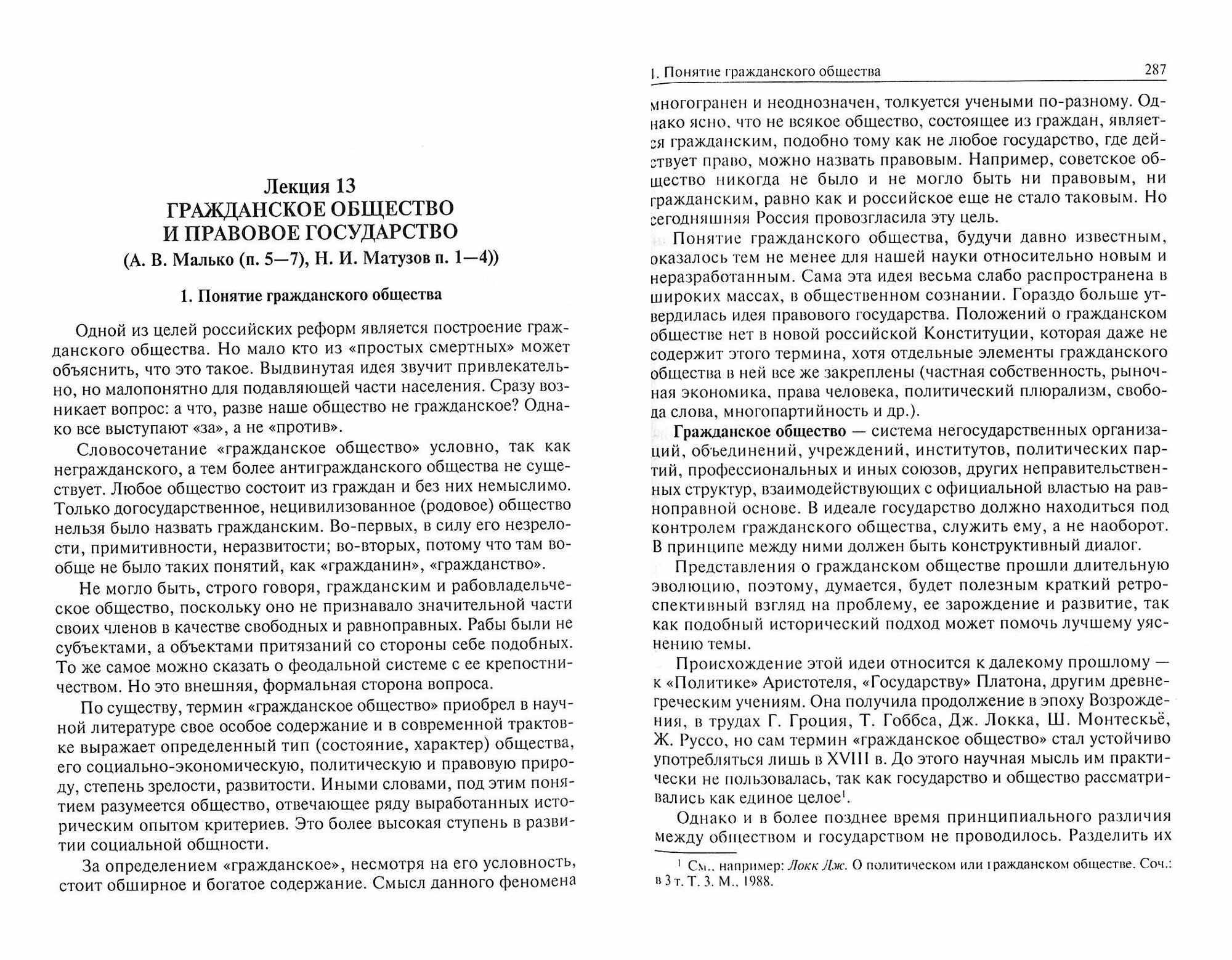 Рассмотрены вопросы сущности государства и права, явления правового нигилизма и правового идеализма, вопросы, связанные с формированием в Российской Федерации гражданского общества и правового государства.
