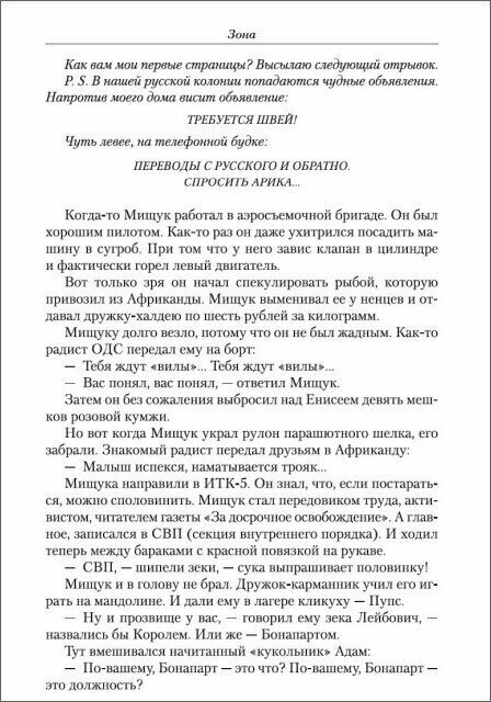 Особенно понравился, пожалуй, "Заповедник" [прилагаю сканы нескольких страниц]. Читала с увлечением и большим любопытством. И с легкой тошнотой - не переношу пьянство, которое так живо, так ярко, так реально заполняет каждую страницу творчества Довлатова. Эта тошнота остается и после...