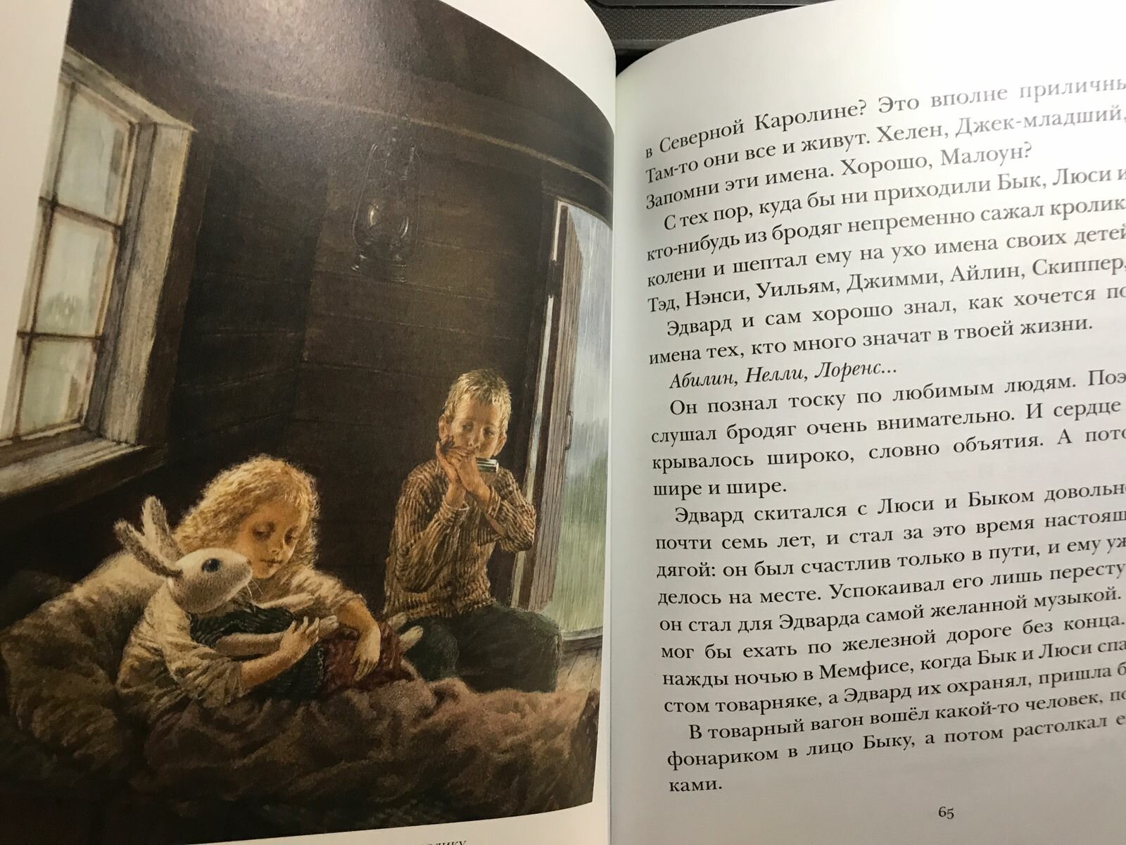 Сегодня привезли заказ, где были две книги ДиКамилло, одна из них про кролика. В общем, не думала, что меня настолько захватит, а потом и потрясёт чтение детской литературы. Если коротко: я в шоке! Забыв обо всём, прочитала книгу, буквально съев ее, настолько интересно и непредсказуемо всё в этой истории. Для ребенка да, думаю, будет тяжеловато, но, тем не менее, очень познавательно и вкусно. -