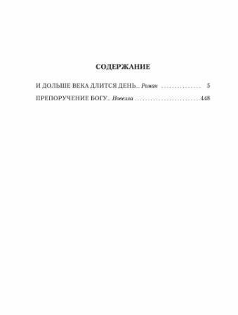 Самый верный путь к творческому бессмертию - это писать с точки зрения вечности. Именно с этой позиции пишет свою прозу Чингиз Айтматов, классик русской и киргизской литературы, лауреат престижнейших премий. Его повести-притчи "Белый пароход", "Пегий пес, бегущий краем моря книги", роман "Плаха" и другие переведены на десятки языков и стали достоянием мировой литературы. В 1980 году публикация романа "И дольше века длится день..." (тогда он вышел под названием "Буранный полустанок") произвела фурор среди читающей публики, а за Чингизом Айтматовым окончательно закрепилось звание "властителя дум". В настоящее издание вошел полный текст романа вместе с новеллой "Препоручение Богу…", написанной автором в 1998 году в качестве послесловия не только к своему главному произведению, но и ко всему творческому наследию.