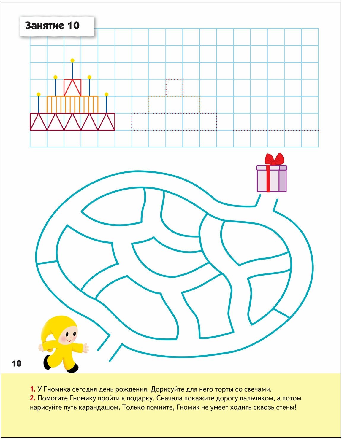 В рабочей тетради 16 страниц, на каждой - отдельное занятие. Все задания разнообразные, интересные. Иллюстрации цветные и почти на всех разворотах есть наш любимый желтый гномик (заниматься с ним вместе ребенку веселее). Бумага белая, плотная. И оформление, и содержание мне очень понравилось. Ничего лишнего, ничего не пестрит. Всё продумано до мелочей. Рекомендую для занятий с детьми старше 4 лет.
