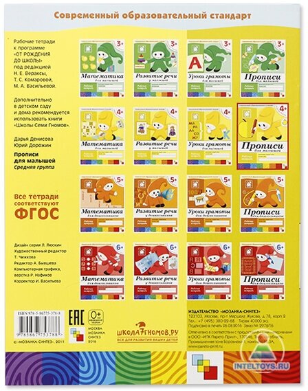 Сервис сравнения цен СкидкаГИД предлагает сравнить цены на товар «Книга: Прописи для малышей Средняя группа Р/т (Денисова Д., Дорожин Ю.); МОЗАИКА СИНТЕЗ ООО, 2022»
