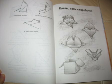 Сама с детва люблю оригами и решила попробовать дать ребёнку. Конечно, можно найти в интернете, но когда перед тобой лежит книга это намного наглядней и интересней. Книжка классная, фигурки разной сложности и размеров, есть чем увлечь и мальчика и девочку. Лучше всего использовать лист того размера, который указан на схеме, но можно и экспериментировать. У нас дома уже целая коллекция фигурок. Отлично развивает логику, внимание и мелкую моторику.