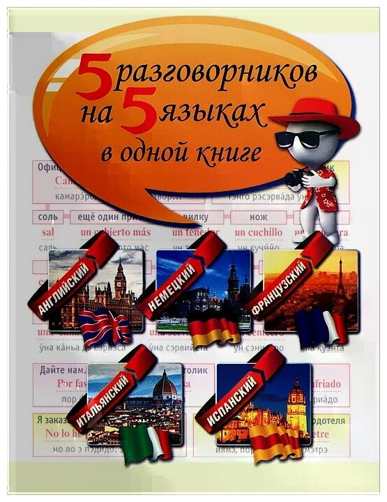Разговорник на 5 европейских языках: английском, немецком, французском, испанском и итальянском. Все основные слова и фразы. Удобная и наглядная подача материала. Простая и доступная передача произношения русскими буквами.