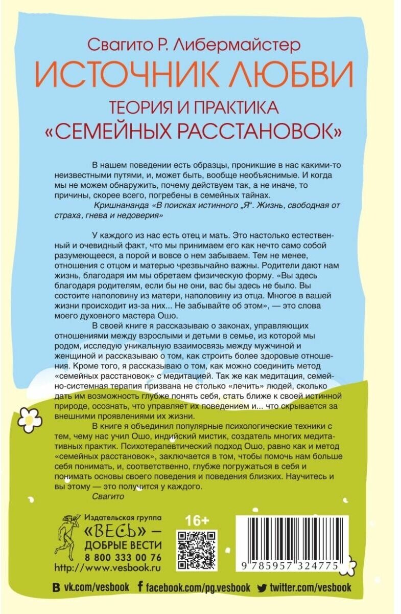 Сервис сравнения цен СкидкаГИД предлагает сравнить цены на товар «Книга: Источник любви. Теория и практика "семейных расстановок" (Свагито Р. Либермайстер); ИГ "Весь", 2018»