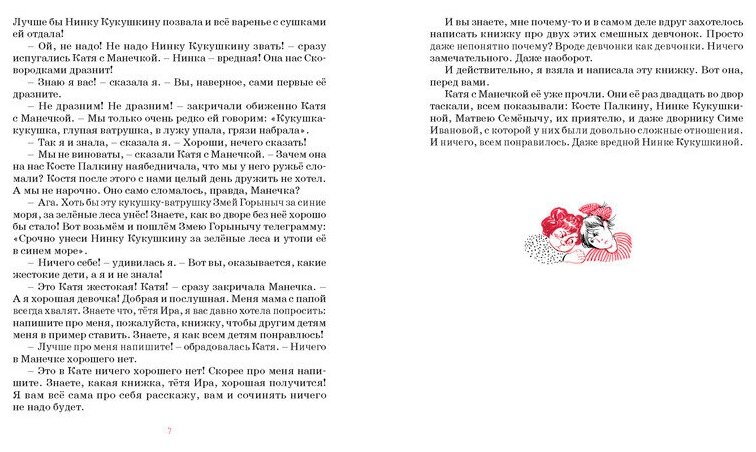 О, как же я обожала эту книгу в детстве. Брала ее в библиотеке минимум раз в полгода! Правда тогда было другое издание, где были картинки лично для меня намного более интересные и подходящие к этой истории, чем те, что представлены в этом издании, но это уже дело вкуса. Сами же истории про Катю и Манечку Сковородкиных, озорных сестер, которые не могут жить в ладу друг с другом не могут никого оставить равнодушным. Я думаю можно провести параллель с книгой Наринэ Абгарян Манюня. Даже имена похожи!) И там и там парочка девчонок, которые всем вокруг доставляют кучу хлопот, но вместе с тем они добрые и стараются быть хорошими, правда у них это плохо получается) Детям книга должна понравиться, ведь она близка им по духу, да и взрослым будет интересно почитать и вспомнить, как они шалили в своем детстве