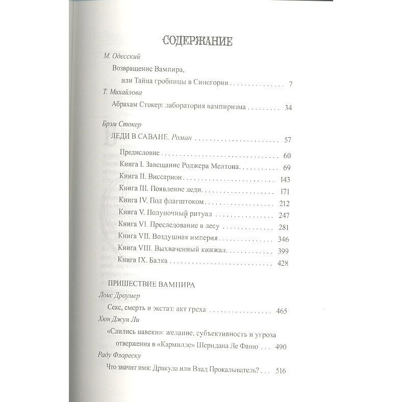 Пространный научный аппарат книги, наряду со статьями отечественных филологов, исследующих не только фольклорные влияния и литературные источники, вдохновившие Б. Стокера на создание вампира, но и малоизвестные биографические данные, проливающие свет на сложный генезис сюжетных линий романа, включает в качестве приложения тщательно отобранные фрагменты работ известных зарубежных философов и литературоведов, посвященных оккультным тенденциям в поздневикторианской готической литературе. Редакция надеется, что "Пришествие вампира", в различных аспектах анализирующее "вампирический нарратив" как в творчестве Б. Стокера, так и в произведениях современных ему художников-прерафаэлитах и поэтов-символистов конца XIX в., послужит своеобразным теоретическим мостиком между "Дракулой" (Энигма, 2005) и "Леди в саване". Ибо, как метко заметил Р. Роббинс, автор вступления к английскому изданию романа: ""Леди в саване" - это роман об уровнях интерпретации, где ничто не есть тем, чем кажется, и где читатель, как и персонажи, постоянно рискует неправильно истолковать ситуацию, в которую помещает нас автор".
