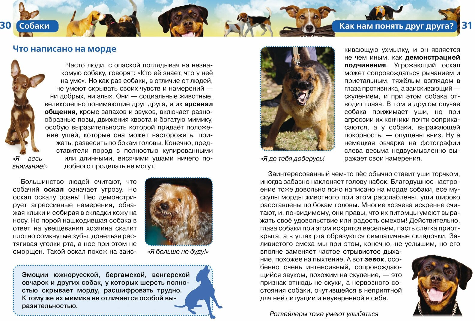 Собака – одно из наиболее популярных и распространенных животных. На протяжении нескольких тысяч лет она живет бок о бок с человеком. Собаки, самые преданные существа, прочно вошли в наше общество и заслужили звание «лучшего друга человека». В благодарность за преданность и безупречную службу во многих странах им установлены памятники. Цель этой энциклопедии – помочь людям лучше понять собак и научиться общению с ними. Читатель узнает историю одомашнивания собак, как менялось отношение к этим животным в разные эпохи. В книге также содержится интересная информация о различных породах собак.