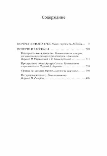 Давно присматривалась к серии книг "Мировая классика". Все-таки решила купить. Я в полном восторге от этой книги! Твердый переплет, прекрасное оформление, шрифт не мелкий. Помимо "Портрета Дориана Грея", в книгу включены следующие повести и рассказы:
