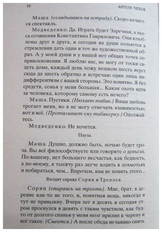 Драматургия - искусство особое. Как известно, современники Чехова в восприятии его пьес разделились на два лагеря. Горячие поклонники Художественного театра наталкивались на вежливое равнодушие или откровенную неприязнь даже тех, кто был весьма расположен к Чехову-прозаику. "Чехов - несомненный талант, но пьесы его плохие. В них не решаются вопросы, нет содержания", - не раз повторял в беседах Л. Толстой. "Пьесы его далеко не лучшее из написанного им…" - говорил И. Бунин. В ХХ веке многое изменилось. С развитием режиссерского театра драма как текст утратила свое значение - она живет и умирает в спектакле. И только немногие пьесы - наверное, они и называются классикой - необходимо не только видеть на сцене, но и читать.