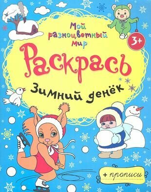 Ещё одна раскраска с зимними сюжетами из серии "Мой разноцветный мир". Картинки внутри милые и забавные, рисунки в том же стиле, как на обложке. В основном изображены животные, которые по разному проводят время в зимний день: катаются на коньках, санках, мишка сладко спит в кроватке и т.д. В этой раскраске, в отличие от обычных, под каждой картинкой есть строчки с прописями. Слова в прописях: белочка, снеговик, мишка, игрушки, лыжи, зайка, санки, волки.