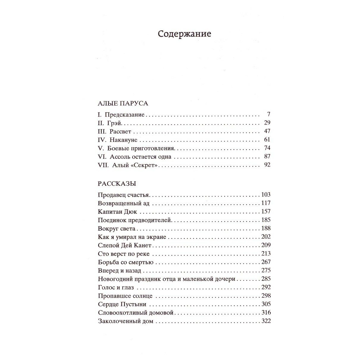 Помимо повести Алые паруса в книге также представлено 26 рассказов Грина, а именно: