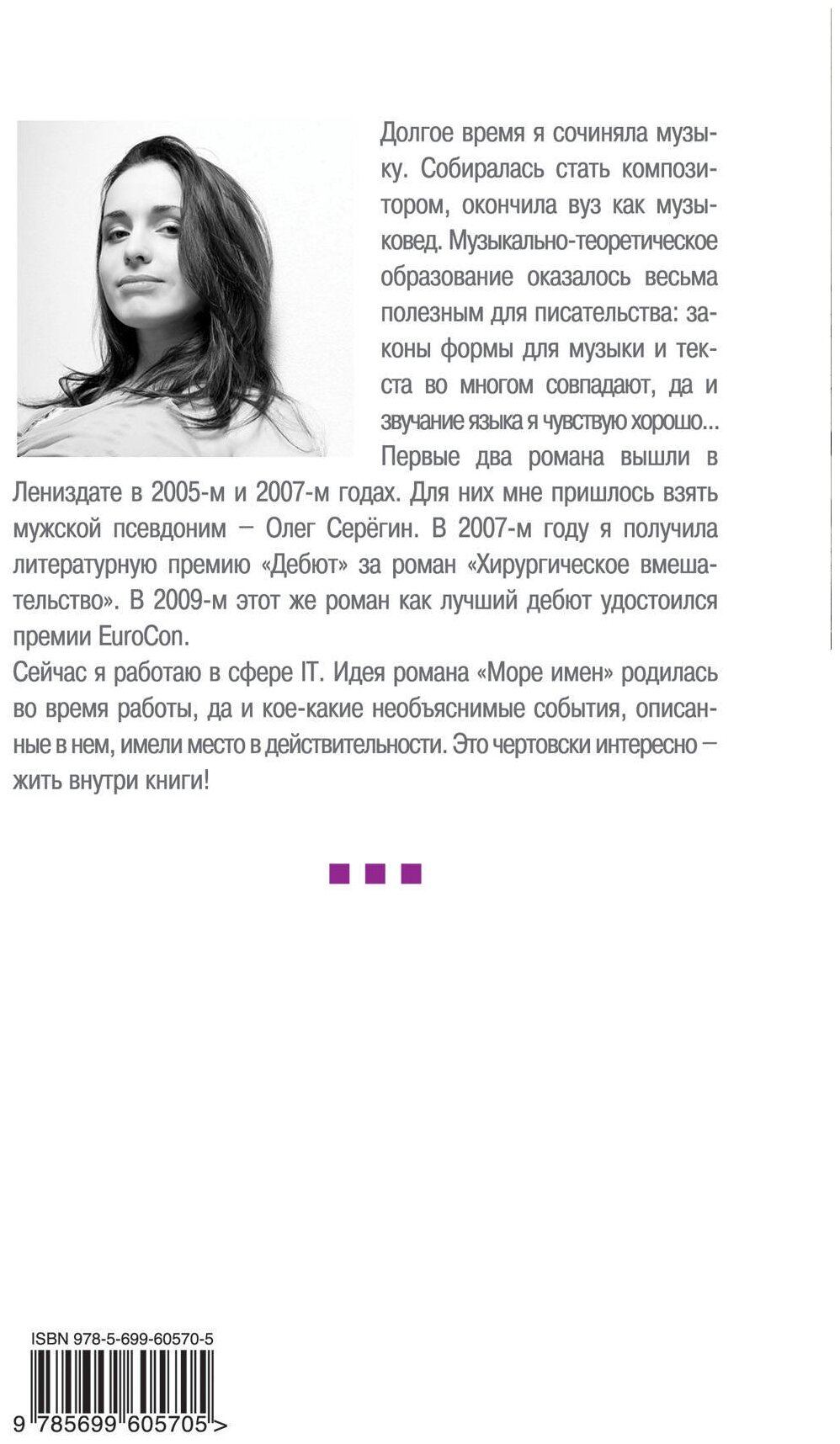 .Герои романа Ольги Онойко «Море имен» работают на крупнейшую информационную корпорацию «Ялик» (в ней без труда угадывается «Яндекс»), Реалии, с которыми приходится сталкиваться молодым специалистам, превосходят самые смелые фантазии. А самые смелые фантазии слишком быстро становятся жизнью...
