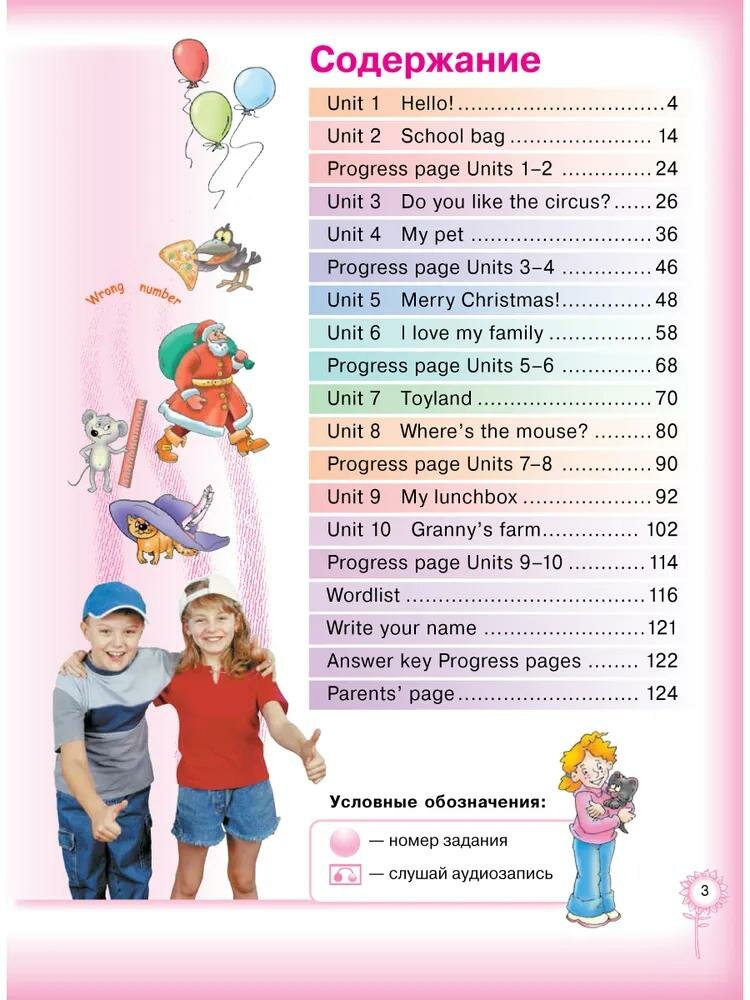 Учебник предлагает разнообразный материал для развития речевых и общеучебных навыков, отобранный с учетом психологических и возрастных особенностей детей. Задания включают тексты для чтения, игры, инструкции по выполнению поделок, страницы самоконтроля, сквозную историю и др. Темы и ситуации общения близки учащимся начальной школы, а предлагаемый языковой материал позволяет им выразить свои мысли и чувства, стимулирует общение со сверстниками на английском языке. Книга содержит интересный и познавательный материал страноведческого характера, а также двуязычный словарь активной лексики каждого раздела и страницу для родителей.