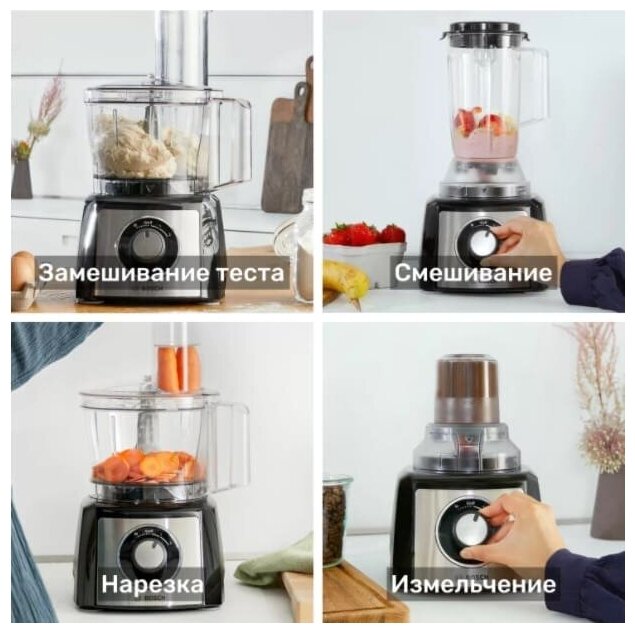 | Функции | блендер, взбивание, смешивание, измельчитель, рубка, терка, шинковка, ломтерезка, помол круп, кофе |