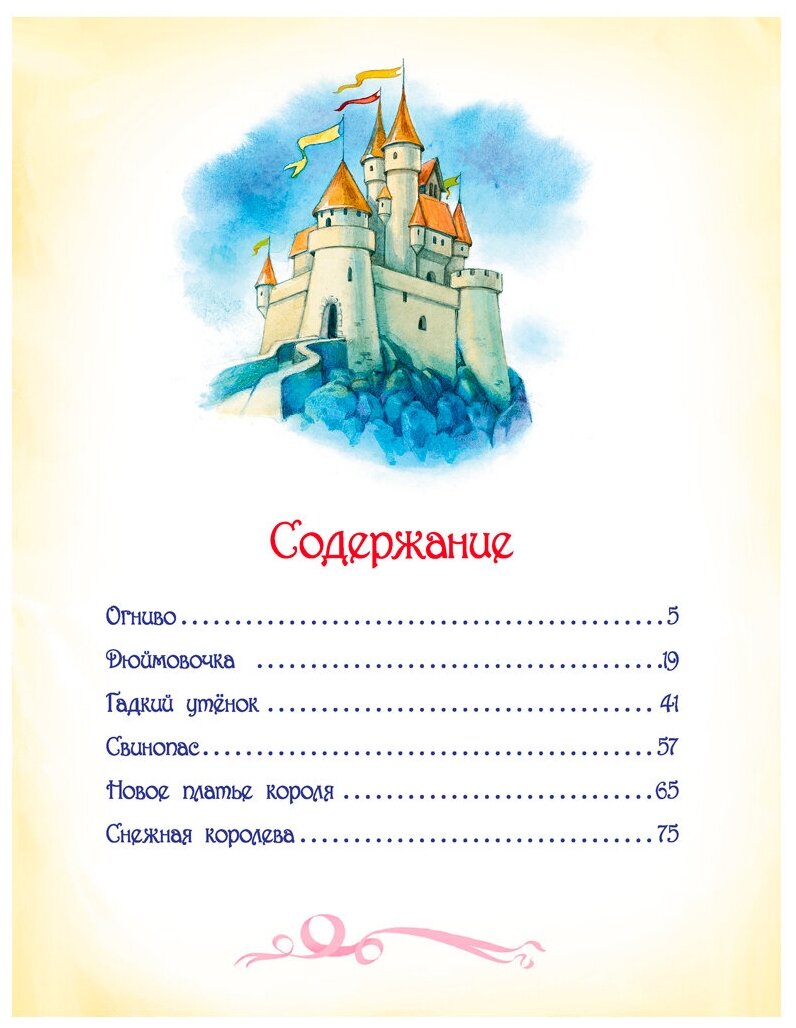 В книгу вошли самые известные и любимые произведения великого сказочника: «Огниво», «Дюймовочка», «Гадкий утёнок», «Свинопас», «Новое платье короля», «Снежная королева». Тексты издаются без сокращений в классических переводах А. Ганзен, Т. Габбе, А. Любарской. Красочные иллюстрации художника-графика, иллюстратора детской книги, участника международных выставок Елены Звольской. Сказки Андерсена самобытны и выделяются среди произведений других писателей-сказочников: его истории и герои не взяты из фольклора, а придуманы им самим. И хотя в сказках много печали и грусти, благодаря их поэтичности и красоте в душе каждого пробуждаются самые тёплые и светлые чувства.