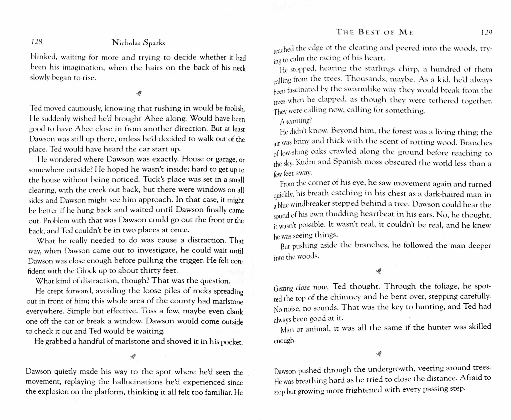 Произведение "The Best Of Me" о паре влюбленных и их сложном расставании которое отправило каждого из персонажей в самостоятельную жизнь. Молодая девушка Аманда и парень по имени Доусон много лет назад любили друг друга, но в итоге расстались. Спустя долгие годы перед нами уже не та юная девчонка, а уже вполне состоявшаяся взрослая женщина со своими проблемами и радостями, но посмотрев на более взрослого Доусона нельзя с уверенностью утверждать что ему также удалось реализоваться. Данная книга Николаса Спаркса полностью посвящена истории двух людей которые полюбили в юности, но осознали истинную силу своих чувств только спустя очень долгий период времени. Героям предстоит выяснить насколько глубокой и мощной может оказаться любовь и если они действительно созданы друг для друга возможно судьба подарит им очередной шанс конечно в том случае если еще не слишком поздно. Интересно смотреть как персонажи постепенно вспоминают свои эмоции пережитые в молодости поскольку в такие моменты приятная ностальгия возникает даже у читателя. Замечательная радужная обложка радует читателей и в целом качество книги можно назвать весьма достойным, а сюжет произведения оказался достаточно интересным, как и развитие персонажей.