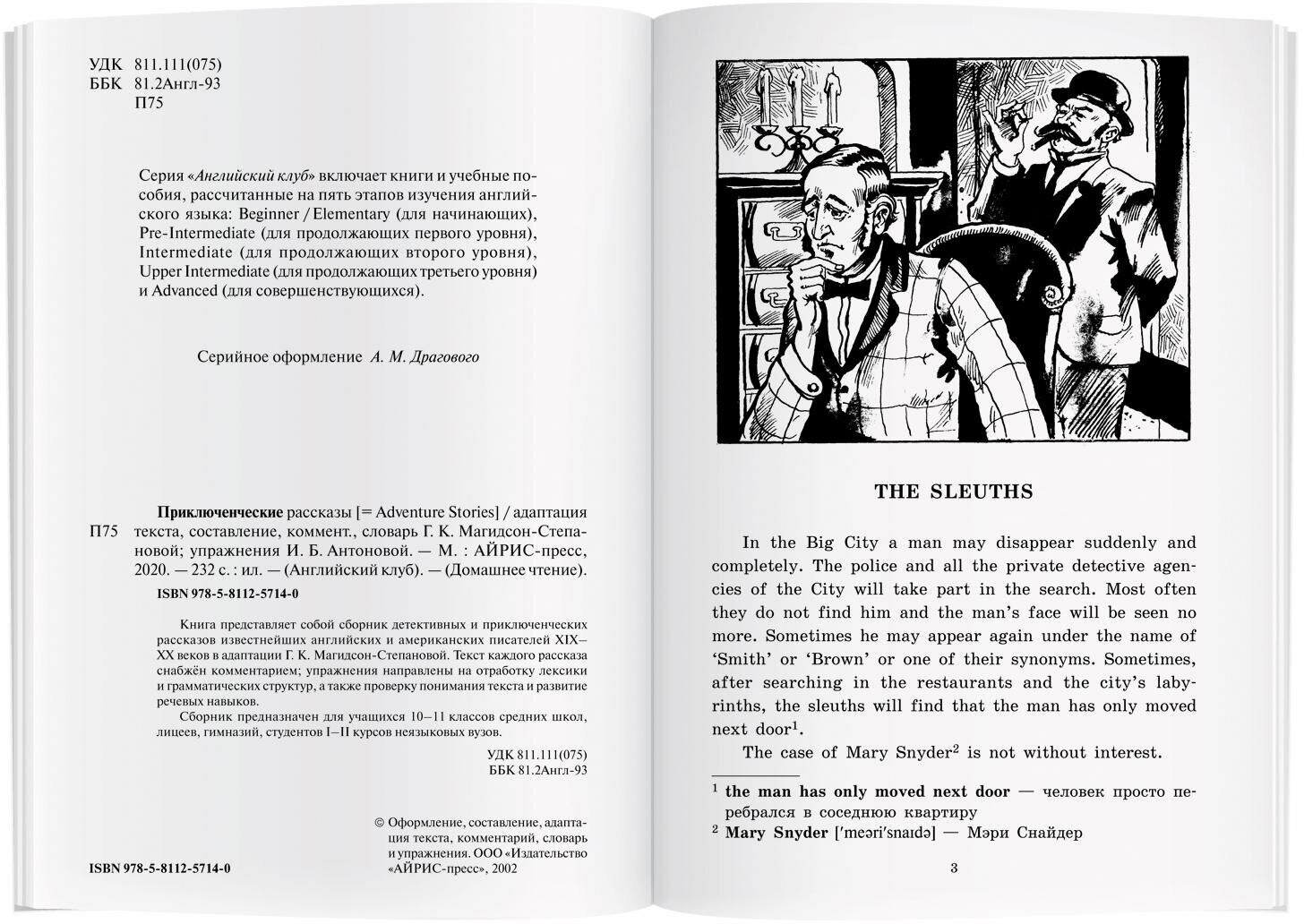 Книга представляет собой сборник детективных и приключенческих рассказов известнейших английских и американских писателей XIX–XX веков в адаптации Г. К. Магидсон-Степановой. Текст каждого рассказа снабжен комментарием; упражнения направлены на отработку лексики и грамматических структур, а также проверку понимания текста и развитие речевых навыков. В конце книги приводится словарь. Сборник предназначен для учащихся 7–9 классов средних школ, лицеев, гимназий, студентов I-II курсов неязыковых вузов.