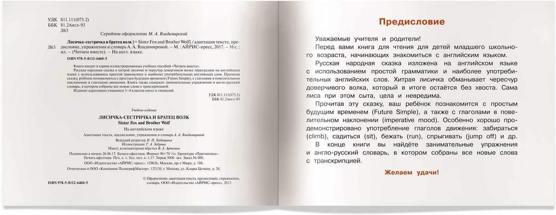 Лисичка-сестричка и братец волк = Sister Fox and Brother Wolf (А. А. Владимирова); Айрис-пресс, 2022