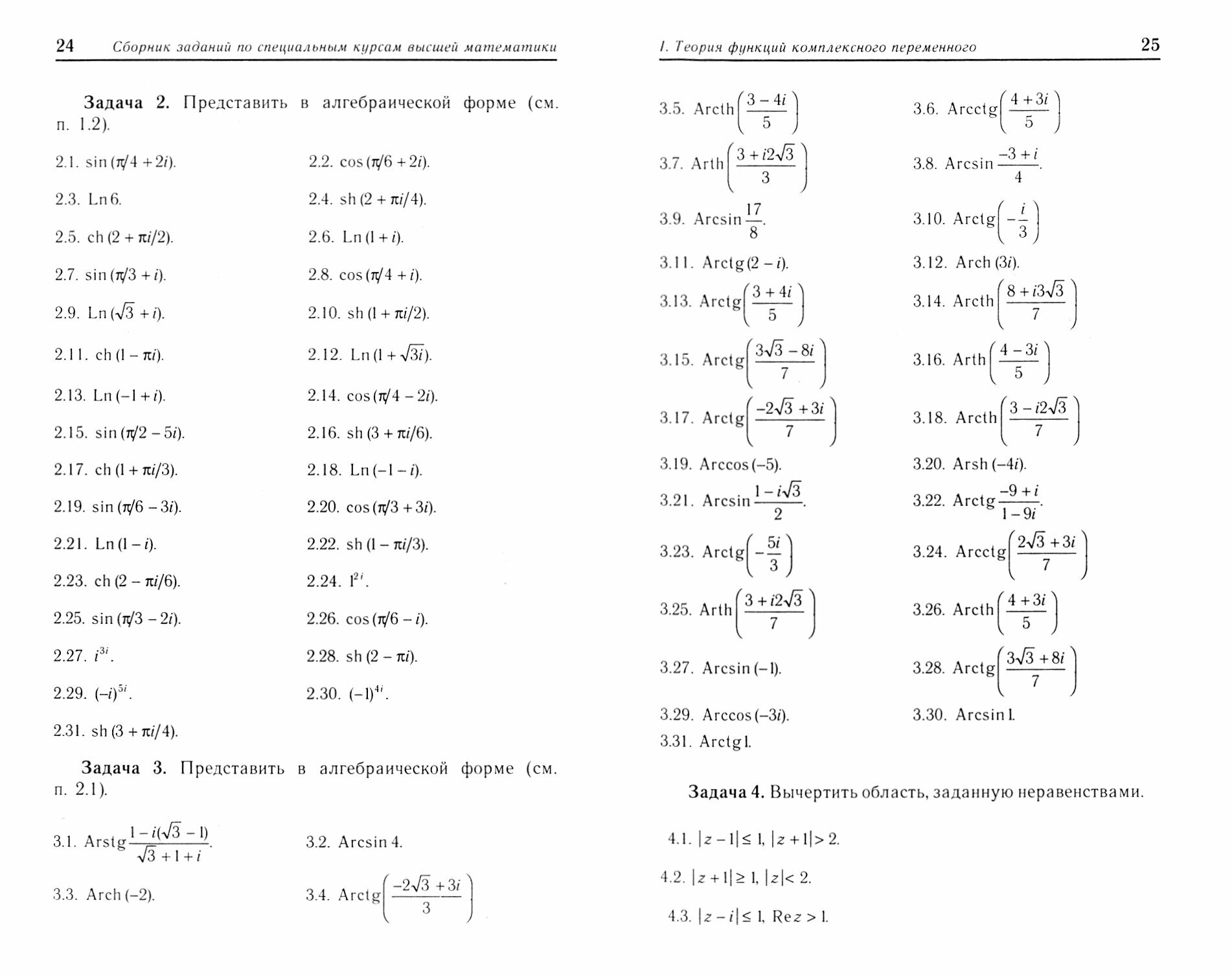 Сборник содержит индивидуальные задания (31 вариант каждой задачи) по специальным разделам курса высшей математики: теории функций комплексного переменного и операционное исчисление, теория вероятностей и элементы математической статистики, уравнения математической физики. Каждый раздел сборника содержит теоретические вопросы, теоретические упражнения и расчетную часть. Учебное пособие предназначено для студентов вузов, обучающихся по направлению "Математика".