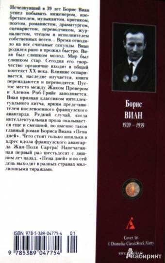 Борис Виан писал прозу и стихи, работал журналистом, писал сценарии и снимался в кино (полтора десятка фильмов, к слову сказать), пел и сочинял песни (всего их около четырех сотен). Редкий случай, когда интеллектуальная проза оказывается еще и смешной, но именно таков главный роман Бориса Виана "Пена дней". Чего стоят только шпильки в адрес идола французского авангарда Жан-Поля Сартра! Напечатанная первый раз шестьдесят с лишним лет назад, "Пена дней" и в начале XXI века выходит во всем мире миллионными тиражами. Неслучайно Ф. Бегбедер поставил этот роман в первую десятку своего литературного хит-парада.