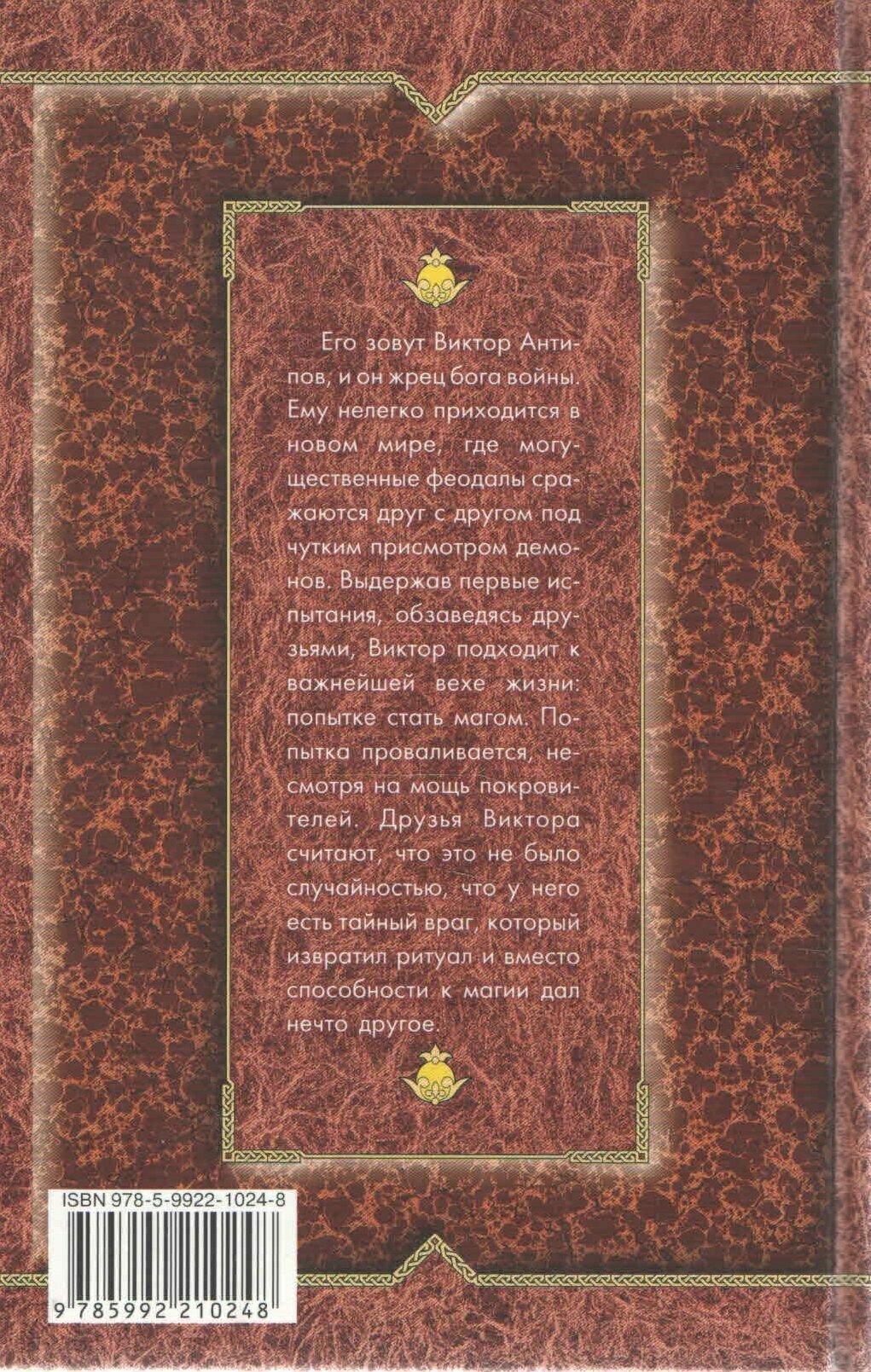 Его зовут Виктор Антипов, и он жрец бога войны. Ему нелегко приходится в новом мире, где могущественные феодалы сражаются друг с другом под чутким присмотром демонов. Выдержав первые испытания, обзаведясь друзьями, Виктор походит к важнейшей вехе жизни: попытке стать магом. Попытка проваливается, несмотря на мощь покровителей.