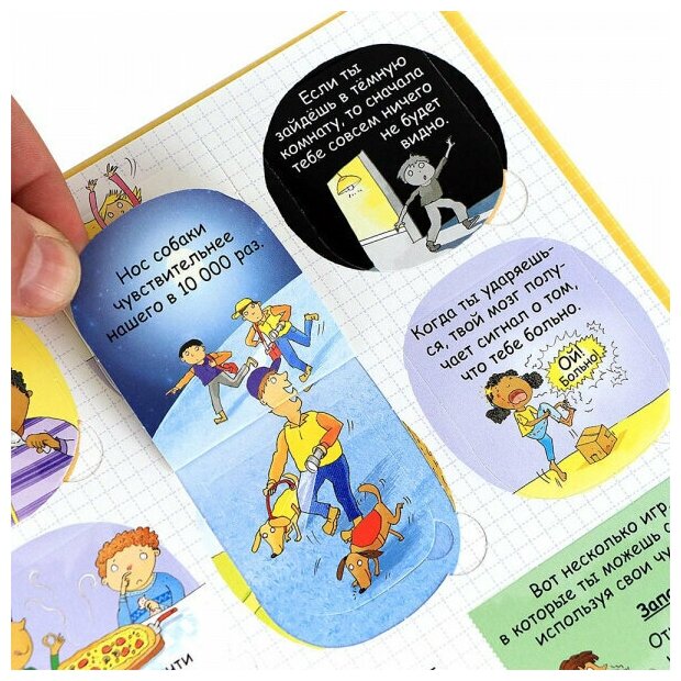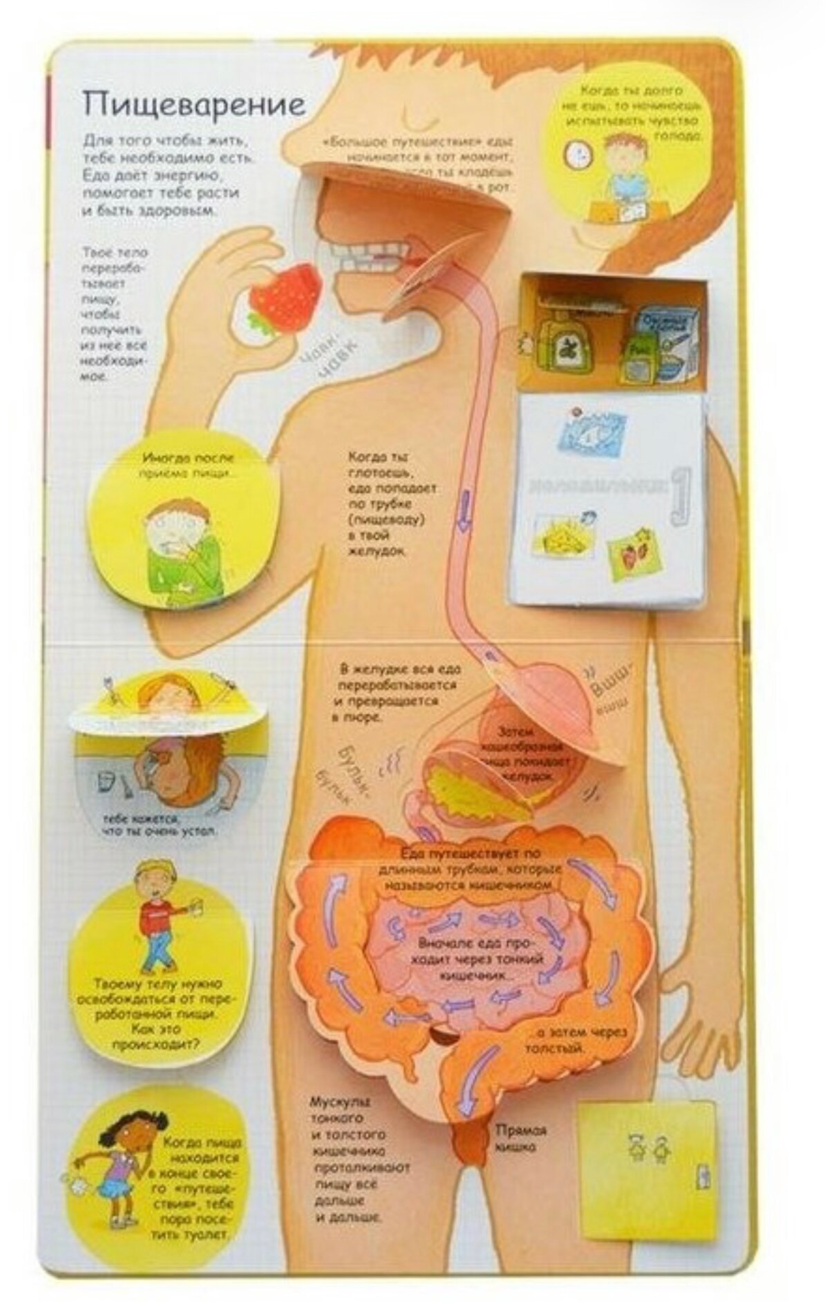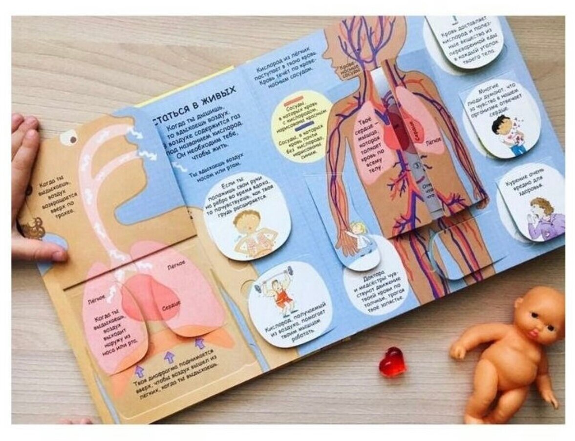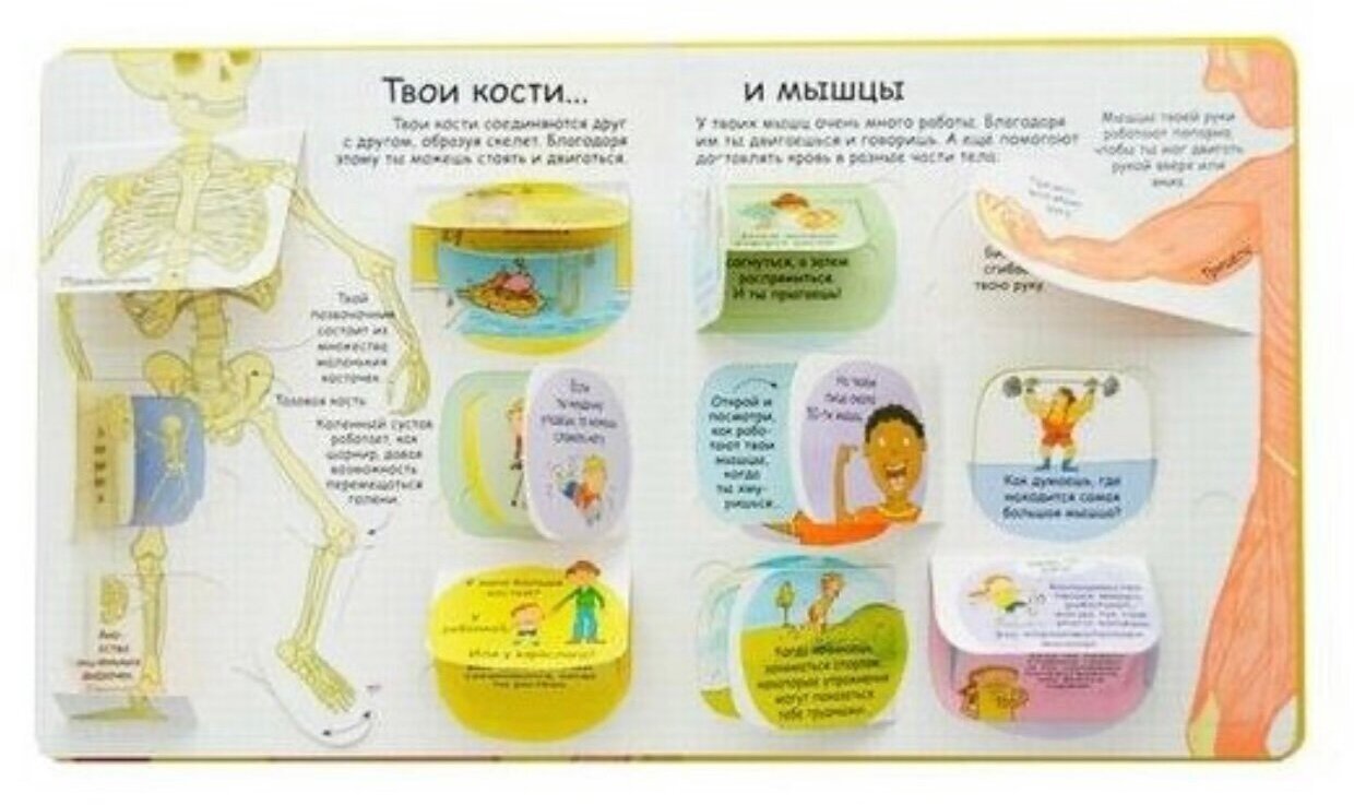 Искала для ребенка трех лет книгу о теле человека, так как было много вопросов, и эта книга оказалась идеальной для этого возраста и старше. Написано все простым понятным языком, ничего лишнего. Открывая окошко, картинка как-будто оживает, и можно наглядно посмотреть как что устроено в организме. Плотные страницы, окошки легко открываются и не мнутся. Рисунки большие, приятные цвета, ничего пугающего, каждый разворот посвящен определенной теме. Мы остались очень довольными, теперь игры во врача стали более содержательными и подкреплены знаниями из книги. Ребенок использует ее как настольную книгу врача.