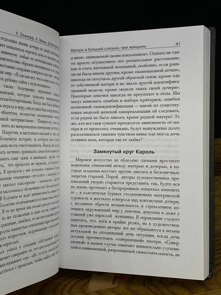 А вообще эта книга не из разряда популярной психологии, это довольно серьезный, фундаментальный труд, где разбираются серьезные проблемы отношений матери и дочери на примерах из литературы и фильмов. Здесь нет советов, нет прямых указаний, как правильно выстраивать отношения. С помощью этой книги разве что можно попробовать определить и осознать свои сложности, если они есть. Ну или двигаться от противного изложенному в книге, выстраивая свои отношения с мамой/дочерью.