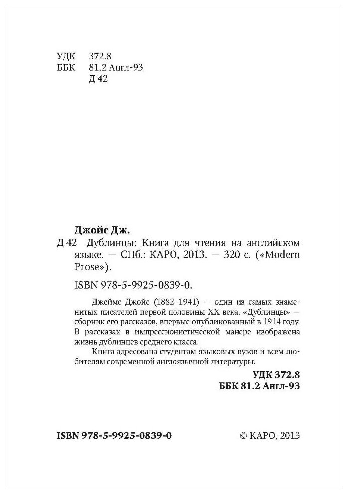 Сервис сравнения цен СкидкаГИД предлагает сравнить цены на товар «Книга: Dubliners / Дублинцы. Книга для чтения на английском языке (Джеймс Джойс); КАРО, 1914»